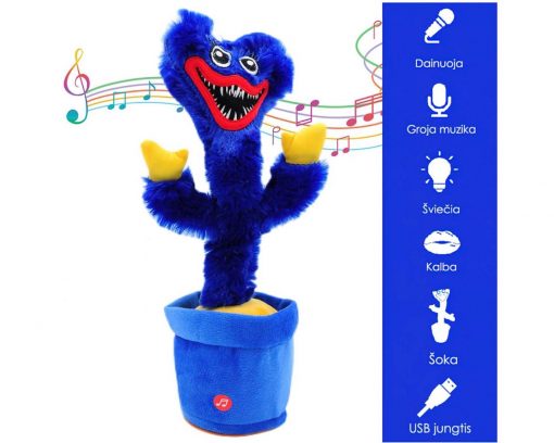 Pasakykite šiam kaktusui viską – 0 jis jūsų žodžius atkartos juokingu balsu! Huggy Wuggy kaktusas yra linksmas šokėjas ir profesionalus dainininkas. Mygtuko pagalba galite keisti įvairias skirtingas dainas!