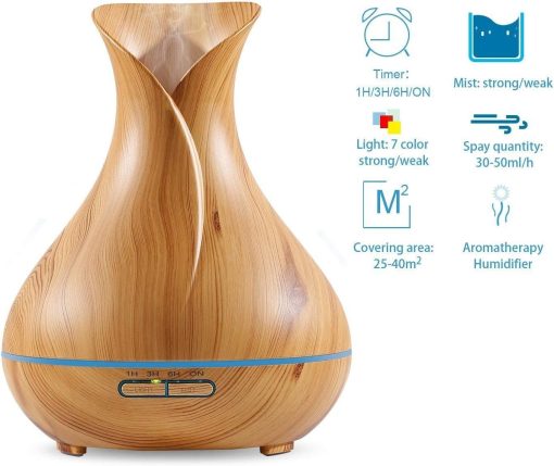 Elegantiško medžio spalvos dizaino prietaisas, kuris papuoš bet kuriuos namus, gali būti naudojamas ir kaip naktinė lempa. Tam skirtos 7 LED spalvos ir 7 šviesesni atspalviai, kurių ryškumą galima lengvai reguliuoti. Tokiu būdu kvapų difuzorius suteiks dar didesnio jaukumo ir žavesio jūsų namams.