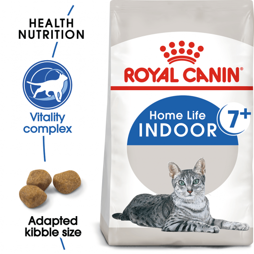 Royal Canin Indoor 7+ – visavertis sausas subalansuotas ėdalas subrendusioms katėms (7-12 metų amžiaus) gyvenančioms patalpose.